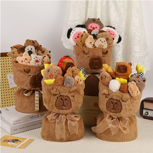 Capybara doll bouquet happiness holiday gift plush cute birthday toy hug bucket decoration arrangement